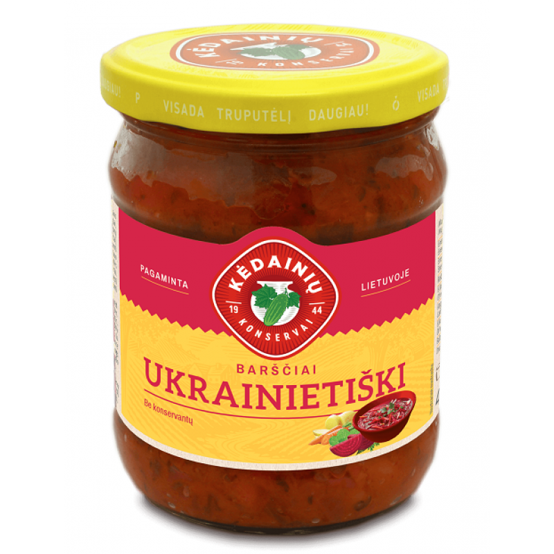 Ingredienti: patate 7% cipolle, carote 7%, olio di colza, concentrato di pomodoro, sale, farina di FRUMENTO, condimenti, barbabietole 28%, zucchero, fagioli 17%, aglio, acido citrico